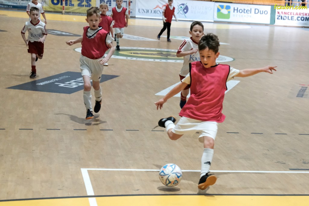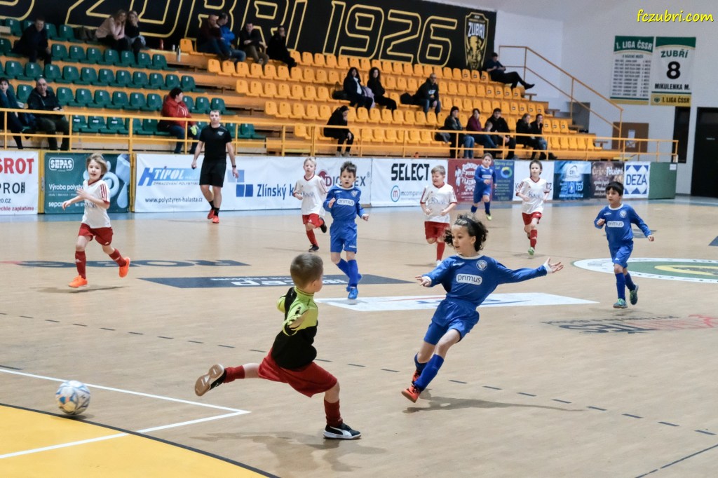 Sobota 22.1.2022 patřila v zuberské Robe aréně turnaji mladších přípravek. Domácí FC Zubří sehrálo 5 utkání a už první zápas proti Příboru nabídl napínavou podívanou. Jedinou branku utkání vstřelil až 30 sekund před koncem Jirka Rapant a zajistil nám první tři body. V druhém zápase proti Dolní Bečvě jsme si rychle vypracovali náskok a nedovolili jsme soupeři zápas zdramatizovat. Třetí utkání s Hutiskem se neslo v podobném duchu a můžeme jen litovat spousty neproměněných šancí. I tak jsme v zápase kralovali a Vojtík Hláčik v brance udržel další čisté konto. Do předposledního utkání proti Val. Mezu „2014“ jsme šli s vidinou, že pokud vyhrajeme, budeme hrát poslední zápas o celkové prvenství. Hra se nám dařila, na celém týmu byla vidět snaha uspět a od začátku bylo jasné, že zápas dovedeme do vítězného konce. V tomto utkání se předvedla domácí hráčka Eliška Zemanová, která dokázala vstřelit tři branky a výraznou měrou pomohla k vítězství. Vrcholem dne bylo poslední utkání proti Val. Mezu „2013“. Utkaly se proti sobě dva týmy, které nepoznaly ještě hořkost porážky. Boj to byl vyrovnaný, makali jsme, ale soupeř byl nad naše síly. Sportovně musíme uznat, že vyhrát si zasloužil a první místo mu patří oprávněně. Tuhle prohru někteří i obrečeli, ale za předvedený výkon v celém turnaji zaslouží obrovskou pochvalu. Na turnaji nám tak patřilo výborné 2. místo, nejlepším střelcem byl navíc vyhlášen Lukáš Huf z našeho týmu s 9 brankami. Děkujeme celému týmu MA Zubří za občerstvení a výborný oběd, Robertovi Jurajdovi za pomoc s uspořádáním turnaje, panu Bartoňovi za skvělou práci s mikrofonem, Lucce a Mili za výbornou obsluhu v bufetu, rozhodčímu Martinu Pavlíčkovi za dohled na hřišti, správcům (Pepa Randus, Pajka Přikryl) sportovišť města Zubří za skvělé zázemí, všem rodičům za napečené dobroty a pomoc s organizací turnaje a samozřejmě i městu Zubří. Bez Vás by to nešlo!!! Díky.