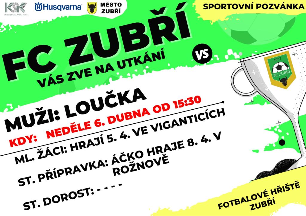 Muži FC Zubří doma přivítají od 15:30 Loučku.